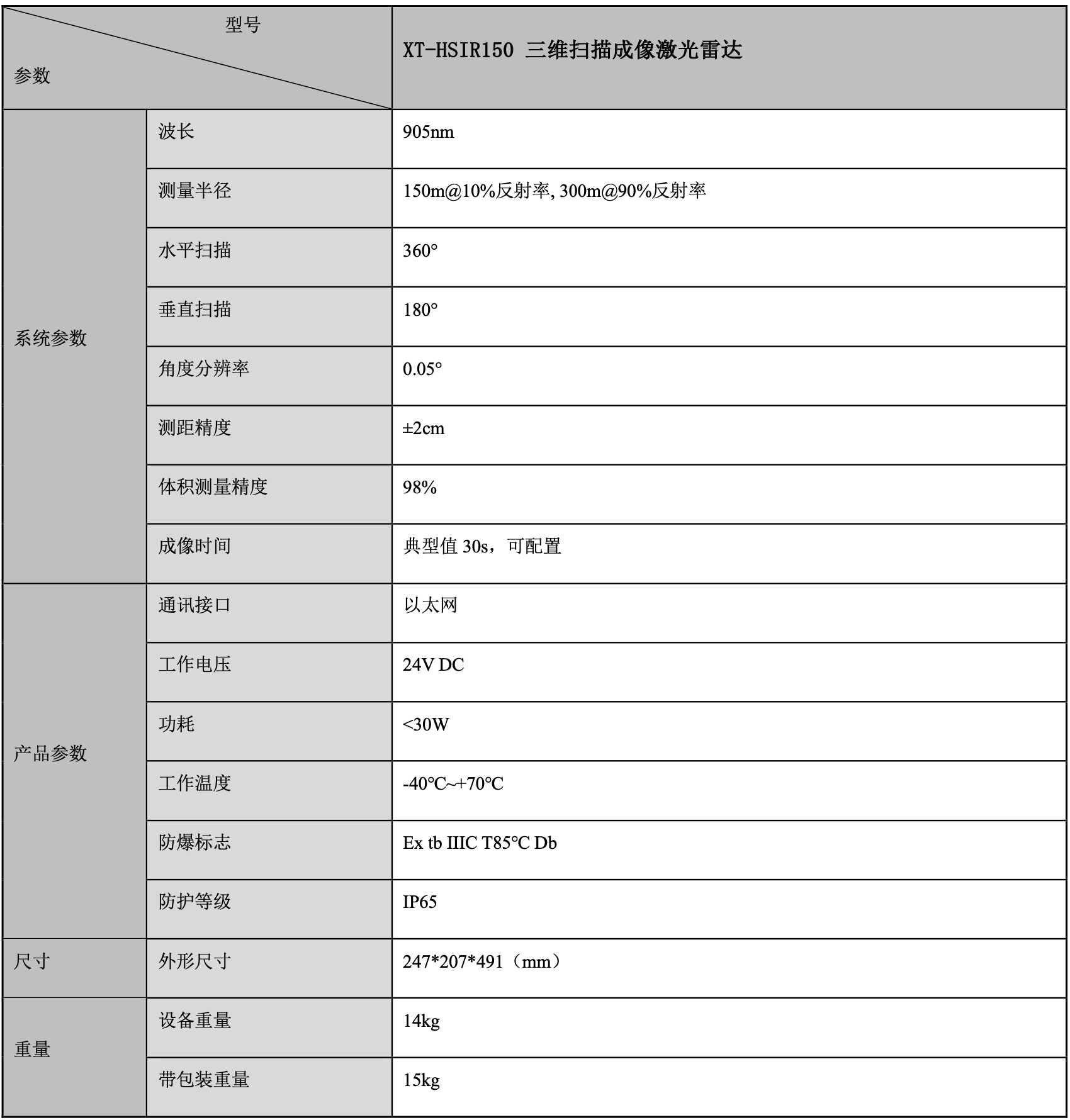 XT - HSIR150三維掃描激光成像雷達(dá):解鎖工業(yè)測(cè)量新可能